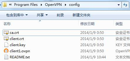 我们需要将这4个文件复制或移动到OpenVPN软件对应的目录下。在第一步的安装过程中,我们将OpenVPN安装到了“C:Program FilesOpenVPN”,因此,我们将这4个文件复制到“C:Program FilesOpenVPNconfig”文件夹下。